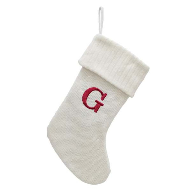 Be the first to review “19″ White Knit Monogram Stocking, G”
