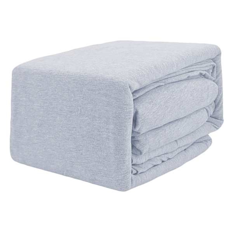 Our all-season sheet set lets you stay cozy and comfortable no matter what the outside temperature is. Crafted from a blend of polyester and cotton, this 4-piece dark grey jersey full sheet set has a jersey knit weave that’s great for cuddling up and has a weight of 150 GSM (grams per square meter). Set includes two pillowcases, a fitted sheet, and a flat sheet. Offered in an array of color options and sizes, it’s easy to get just the right look whether you want to complement or contrast your existing comforter.
