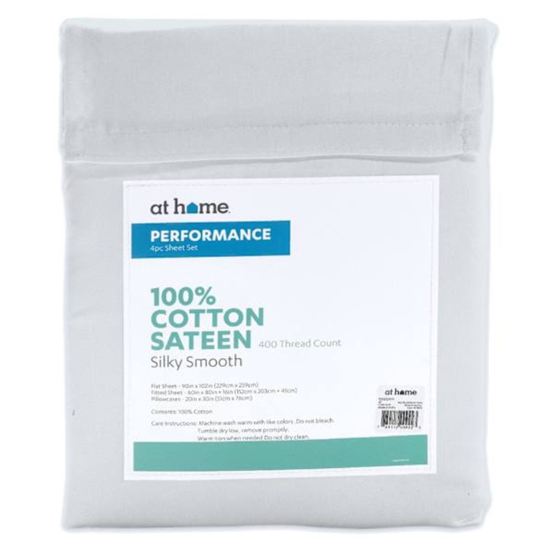 4-Piece Grey 400 Thread Count Cotton Performance Sheet Set, Queen