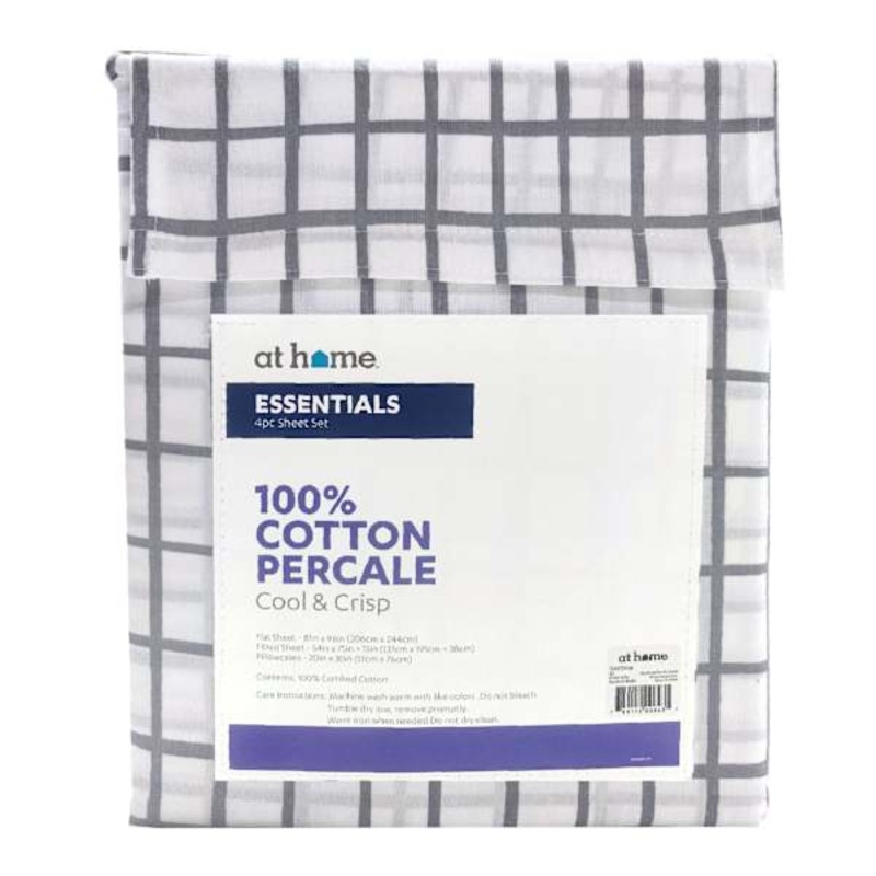 4-Piece Grey Grid 200 Thread Count Essentials Sheet Set, Full