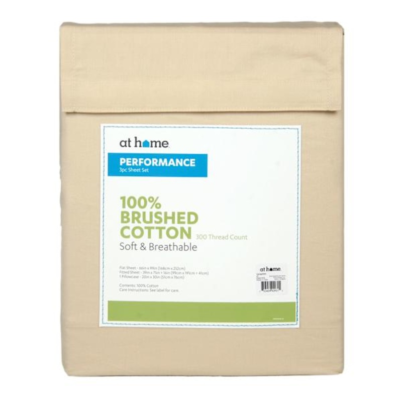 4-Piece Taupe 300 Thread Count 100% Brushed Cotton Percale Sheet Set, Twin