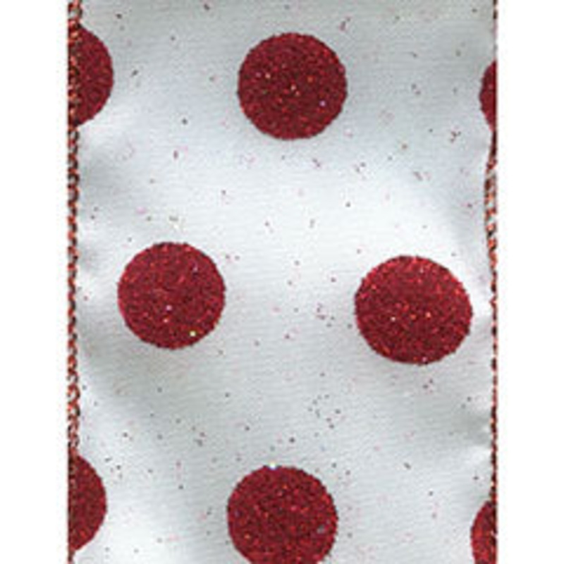 FDYB4372861039#40 Wired Declan Ribbon - White/Red, 10 Yds