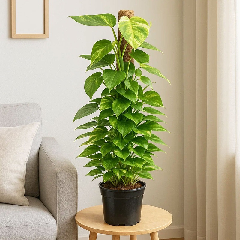 8. Support: Epipremnum Aureum on a moss pole will climb and grow. Make sure the moss pole is sturdy and can support the weight of the plant as it grows.
