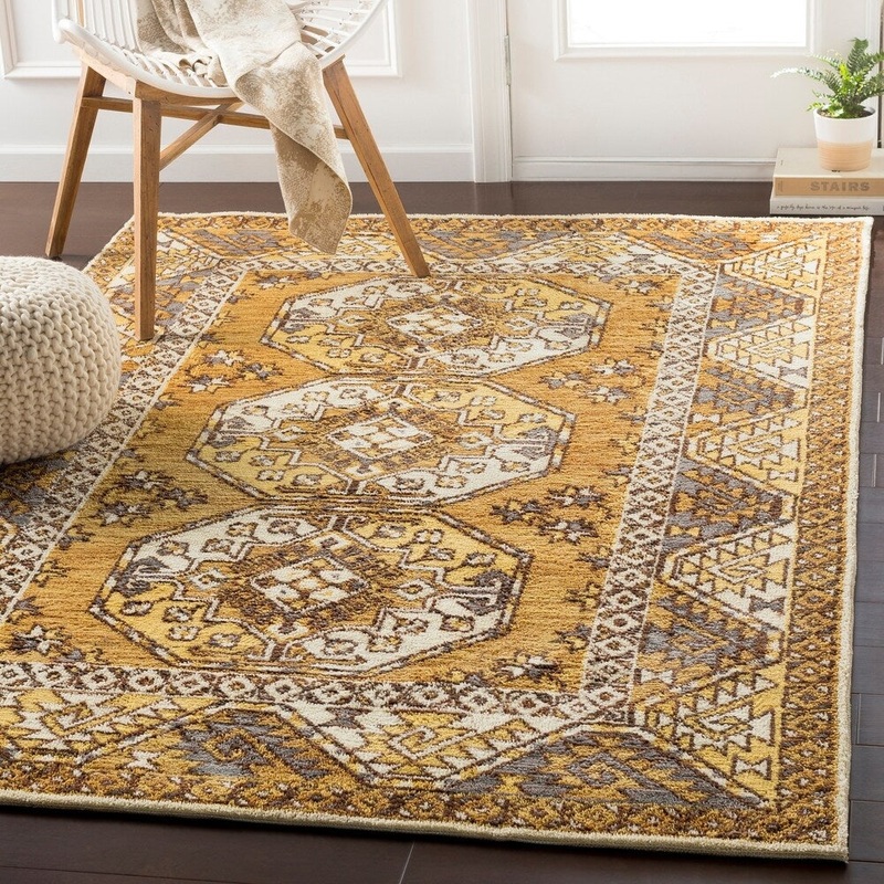 Abalos Southwestern Border Mustard Accent Rug – 2′ x 3′