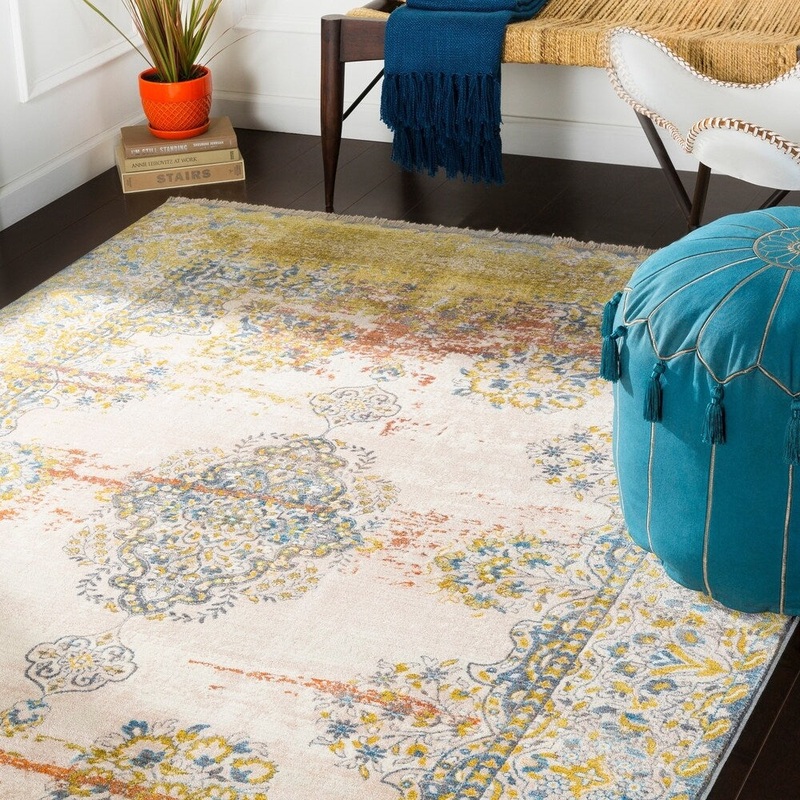 With a delicate sheen and a distressed vintage pattern, the Albertine collection is sure to bring high style to any space. Made with a soft polyester, this collection features brillantly detailed accents, which provide depth and give the perception of a handmade rug at a great price point. Fringe detail on all sizes except runners. Machine made in Turkey. Professionaly clean or spot clean only. Rug pad recommended.