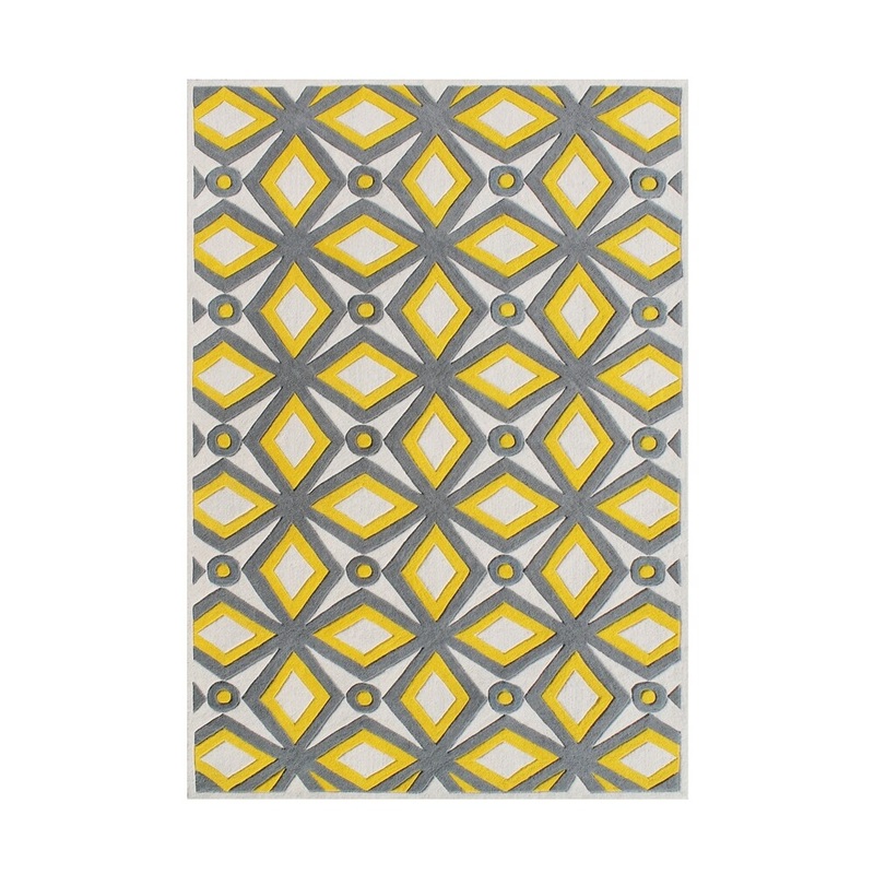 This stunning rug won’t readily show everyday wear and tear like a solid color rug might. The colors of vanilla, opal grey and banana cream are simply beautiful. The intricate design of these very trendy colors makes for an interesting combination. It will be perfect for busy walkways in your home, office or business space and the quality construction of this rug is up to the challenge.Specialty rug designers and hand-craftsmen created this rug with age-old techniques. Each individual 100-percent wool fiber was hand-woven with precision to create this geometric design that will blend well into many styles of decor. It will fit nicely with modern decor as well as mid-century or vintage style decor. Minimal care will keep this rug in top shape. Simply vacuum regularly then periodically have professionally cleaned for a rug that you will love for the ages