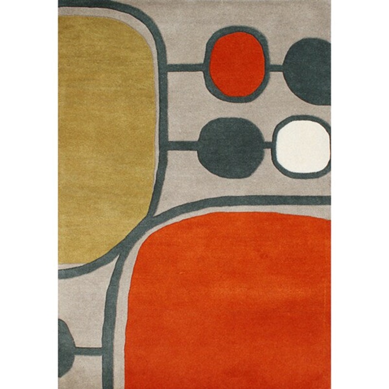 Add a bold, contemporary touch with this colorful Alliyah rug. Instantly update any room with the abstract design composed of large circles connected by thick lines. Vibrant shades of gray, red, amber, ivory and black hues add a crisp, modern color palette