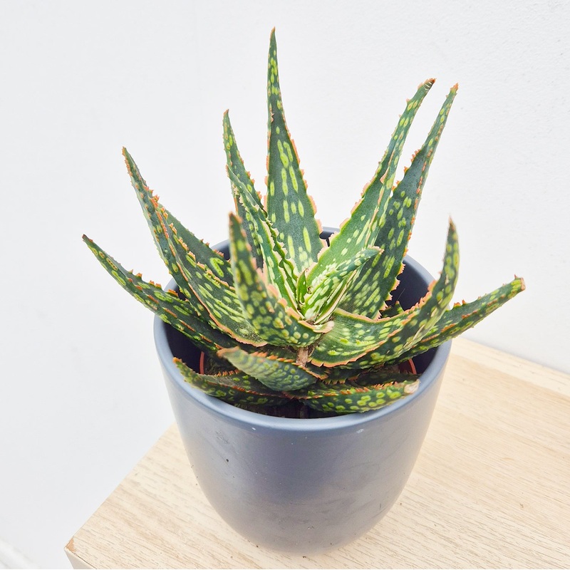 Hybrid Aloe plants are a diverse group of Aloe species and hybrids, bred for their unique and striking foliage, compact size, and decorative appeal. These hybrids often feature thick, fleshy leaves with intricate patterns, colours, and textures, ranging from green and blue tones to speckled or striped variegation. Many have spiked or serrated edges, adding a dramatic architectural quality to their appearance.