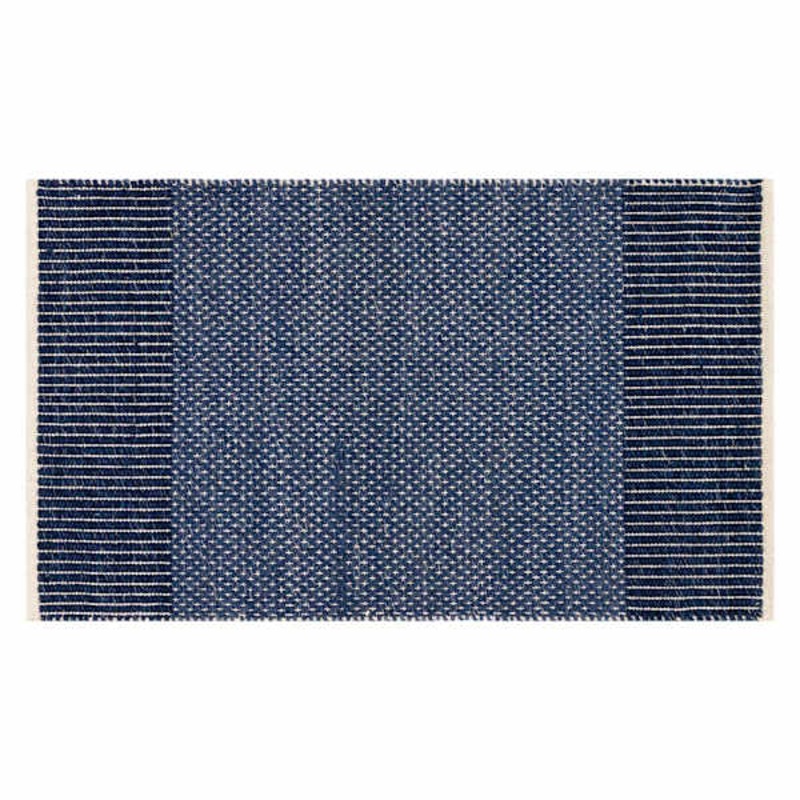 An area rug warms up hard surface flooring while laying the groundwork for the rest of your home dcor. Rugs are a must for creating the base mood for every room throughout your home. Constructed of wool and cotton, our dark sapphire Amena area rug features a striped border detail and speckled center in rich sapphire blue. Surprisingly soft, this rug is ideal for bringing a cozy and inviting feel to your space with the added benefit of being constructed of a long-lasting wool and cotton blend. Available in 2x4ft. and 5x7ft. sizes.Dimensions45.0″ L x27.0″ W x0.5″ H Weight3.4 lbs.ColorblueMaterialWoolShapeRectangleDepartmentRugsLocationAccent RugsUPC885369478048Location ID48-G05