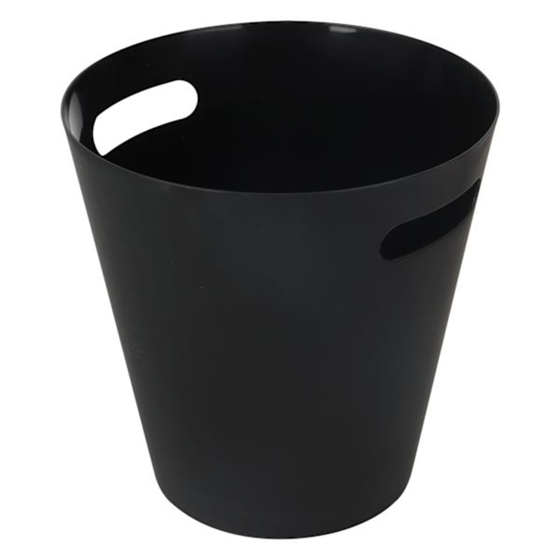 Our Round Black Trash Bin is a small, sturdy and oh-so-affordable solution for discarding trash in tight spaces. Stash it under desks in offices or dorm rooms or tuck it discreetly in bedrooms and bathrooms. It features an open top for easy access, while cutout handles make for easy emptying and portability.