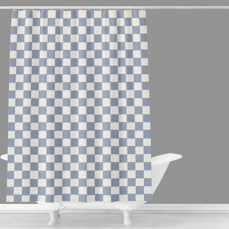 Its cheerful blue and white checkered pattern adds a playful yet classic touch to any bathroom decor. This curtain not only enhances privacy but also keeps water where it belongsinside the shower