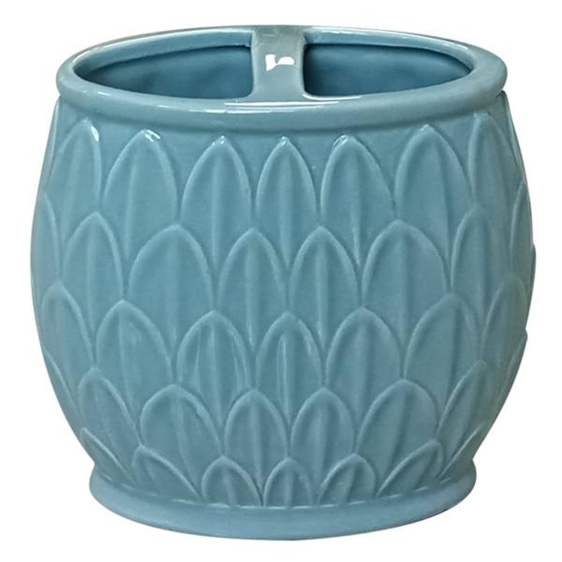 Blue Fan Ceramic Toothbrush Holder, 4.5″
