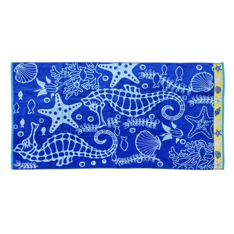 This bold 100% cotton Blue Seahorse Jacquard Velour Beach Towel is the perfect choice when you want to wrap up in a comfort after a refreshing dip. The classic style, generous 34x64in. size and bold color palette make it the perfect choice for summertime f