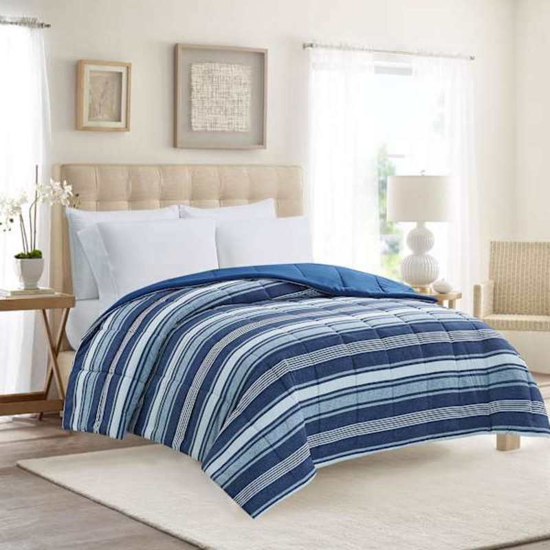 Blue Striped Print Reversible Brushed Microfiber Comforter, Full/Queen