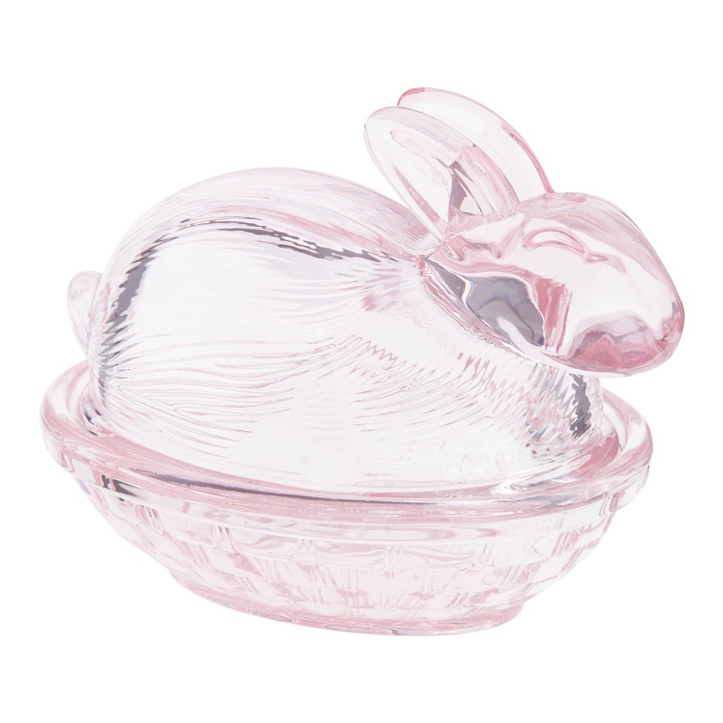 A beautiful piece to get your home ready for the Easter season, this blush-pink glass dish is fashioned into an adorable bunny shape with a lid. Fill it with candy eggs, potpourri or other accoutrement to add an elegant touch to your decor.