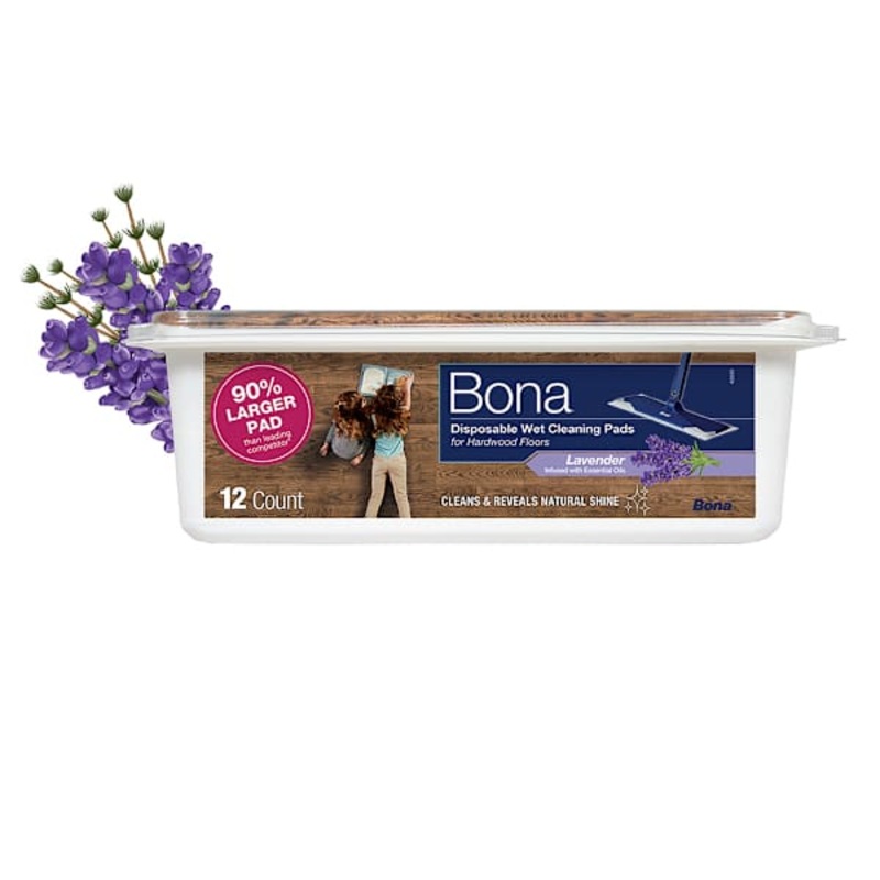 For a quick thorough clean, Bona Wet Cleaning Pads feature a multi-layered design infused with Bona Hardwood Floor Cleaner. The pre-moistened pads quickly clean hardwood floors effectively by removing dust, dirt and grime. The pads are perfect for spot cleaning and cleaning those unpleasant pet messes. These extra-large cleaning pads are specifically designed for use with the Bona Family of Mops. These pads won’t scratch or damage your floor, and are safe for use on coated hardwood floors. The Lavender scent offers a calming essence of freshly picked lavender petals. The fragrance contains lavender essential oils providing a long-lasting pleasant aroma. Love your floors with Bona. Sustainable Solutions for a cleaner & healthier home.