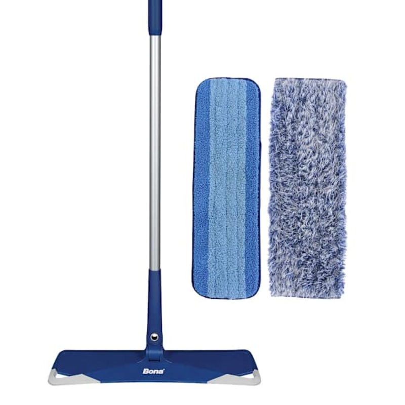The Bona Premium Microfiber Mop for Multi-Surface Floors, with a durable telescoping mop pole and extra-large mop head, provides an easy and quick way to clean your floors. Rubberized and flexible corners protect furniture and baseboards from damage. The Bona Microfiber Mop comes with two washable and reusable microfiber pads. The Bona Microfiber Cleaning Pad features a patented design with dual zone cleaning action. The Bona Microfiber Dusting Pad attracts dust, pet hair and household allergens. For best results, use with any of Bona’s amazing floor cleaners.