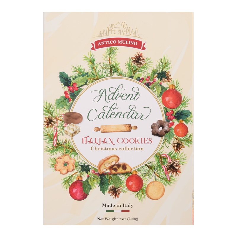 Celebrate the days leading up to Christmas in Italian style with this traditional cookie advent calendar. Made in Tuscany by Italy's family-owned, family-run Borgo de' Medici company, it's filled with an assortment of 24 plain and chocolate canestrelli coo