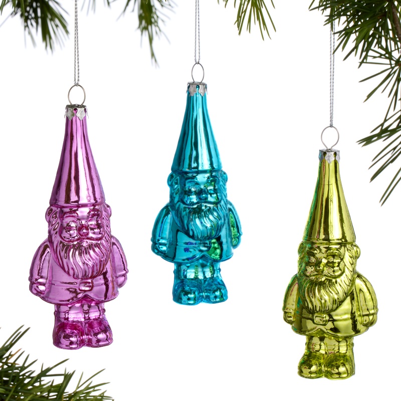Bright Glass Gnome Ornaments Set of 3