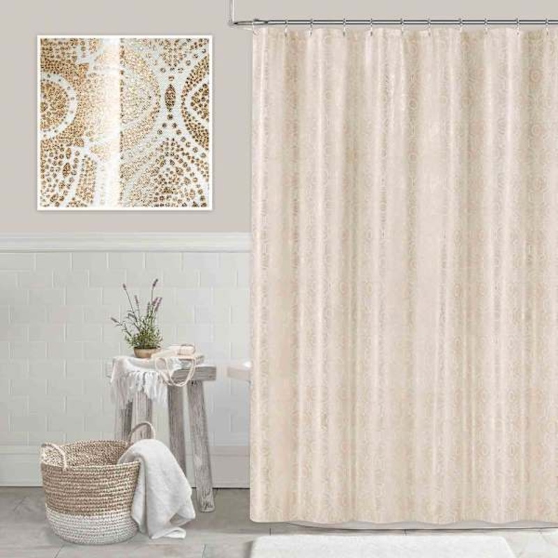 Elevate your bathroom decor with this stunning shower curtain. It’s beautiful metallic color adds a touch of sophistication to any bathroom while the polyester material ensures easy maintenance. Bring a sleek and stylish vibe to your daily showers with our Printed Metallic Foil Medallion Shower Curtain.