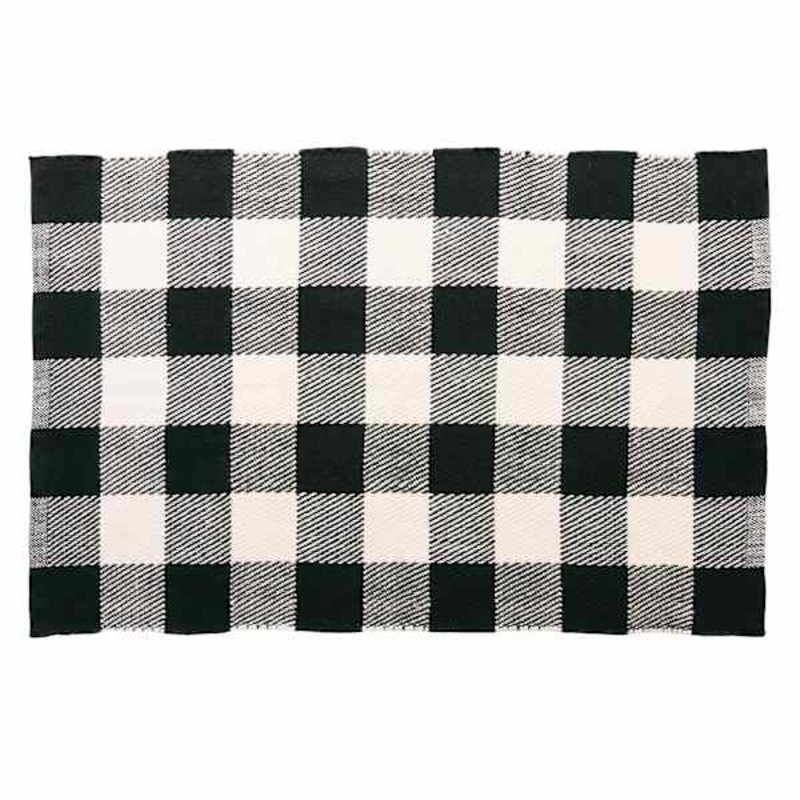 Looks and artistry aside, area rugs help absorb and muffle noise as they soften the step of hard flooring. Our 24x36in. Black and White Buffalo Plaid Layering Mat is constructed of durable polyester and designed to stand up to any and all traffic and wear. With a neutral black and white check, this rug offers a cozy and inviting feel to your rooms with the added benefit of being easy to care for.Dimensions36.0″ L x24.0″ W x0.2″ H Weight2.8 lbs.ColorblackMaterialPolyesterShapeRectangleDepartmentRugsLocationAccent RugsUPC602545141462Location ID43-HW12