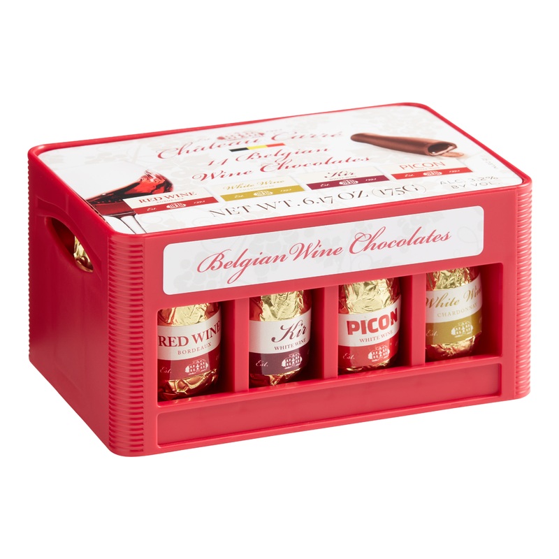 Enjoy a boldly complex mouthfeel with these miniature wine bottles made of exquisite Belgian dark chocolate and filled with premium wines. Your tastebuds will take a flight around the world with this selection of French and Portuguese vintages including Bordeaux, Champagne, Porto and more. Individually wrapped in foil and packaged in a sturdy plastic crate, these delicious delicacies are sure to impress chocolate lovers and wine connoisseurs.