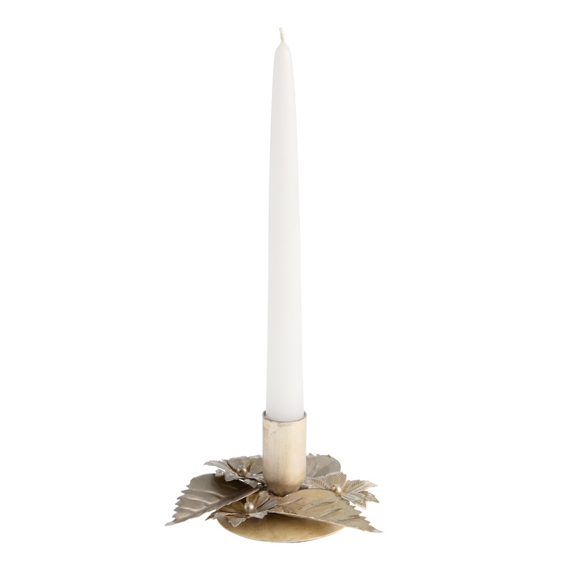For luxe, festive decor with an heirloom quality - without the sticker shock - look no further than our beautiful poinsettia taper candle holder. Crafted in India from iron with a silver-gold crackle finish to complete its antiqued look, it features an art