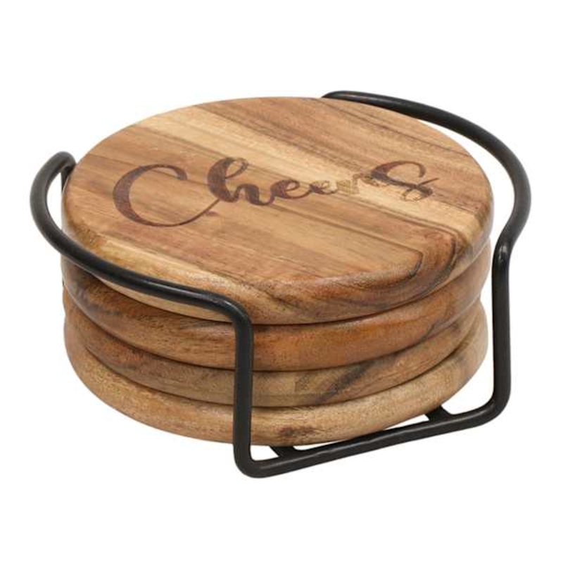 Be the first to review “Cheers Brown Wood Coaster Set”