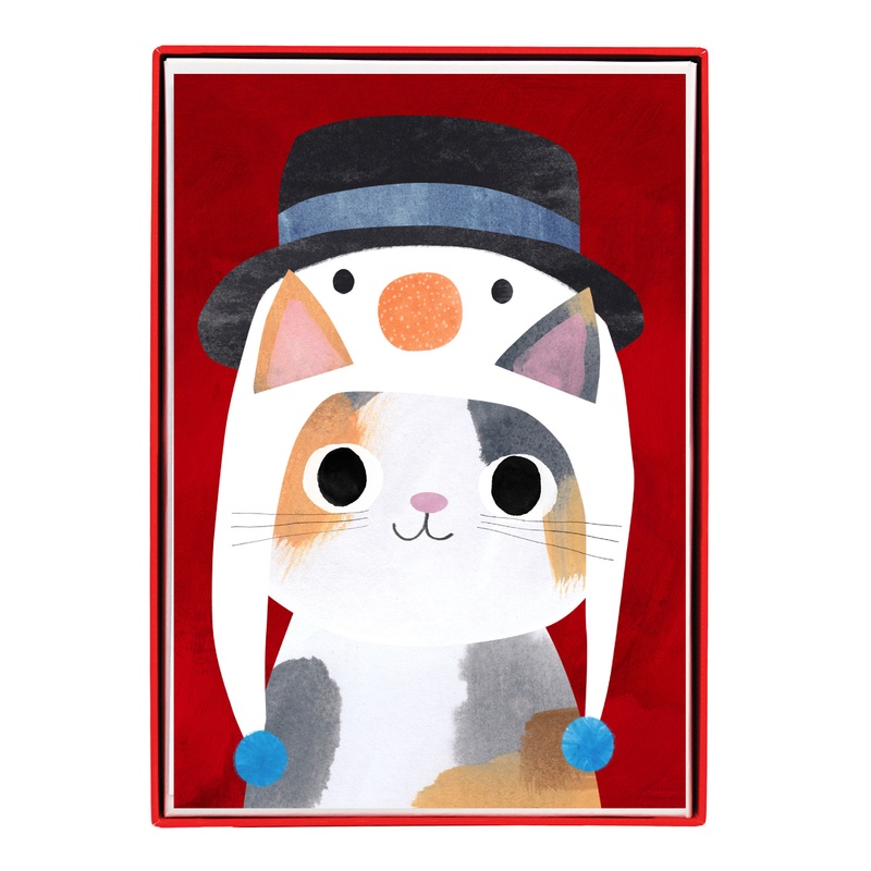 Send an adorable holiday greeting with this set of boxed cards featuring a calico kitten wearing a snowman cap its head. The message on the inside reads: “May your days be meow-y and bright.” These cards are a heartwarming way to spread yuletide cheer to everyone on your list this season.