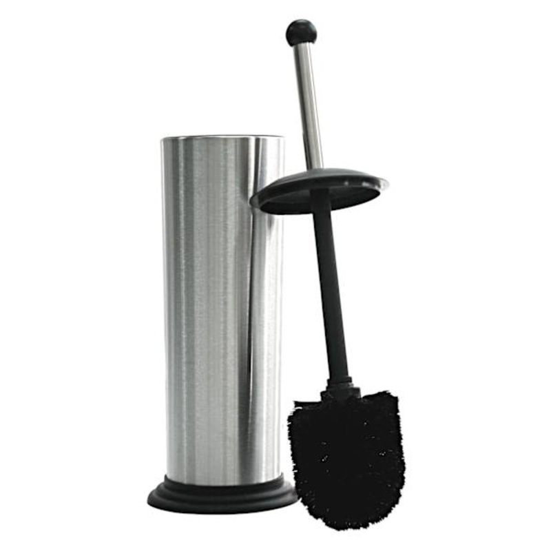 Add to your bathroom decor with this convenient toilet brush holder. Its shape adds a contemporary touch, while the metal finish effortlessly complements any color scheme. With its sturdy construction, it ensures long-lasting use and provides a convenient storage solution for your toilet brush.