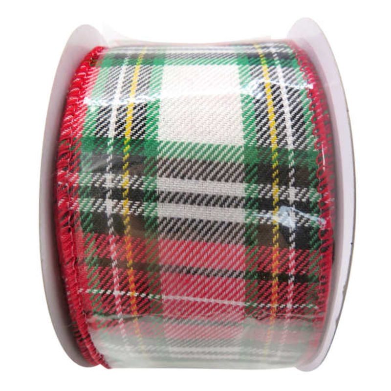 Make this holiday season truly unforgettable with our stunning collection of Christmas and holiday dcor. Whether you prefer traditional elegance or modern whimsy, our handpicked selection will help you bring joy and cheer to every corner of your home. Our 10 yd. 2.5 in. Plaid ribbon is your perfect traditional colors and style to decorate this season. With shades of red, green, yellow, white and black you can this ribbon to any decoration around your home. Use this for your trees, gifts, or other decoration pieces around your home.