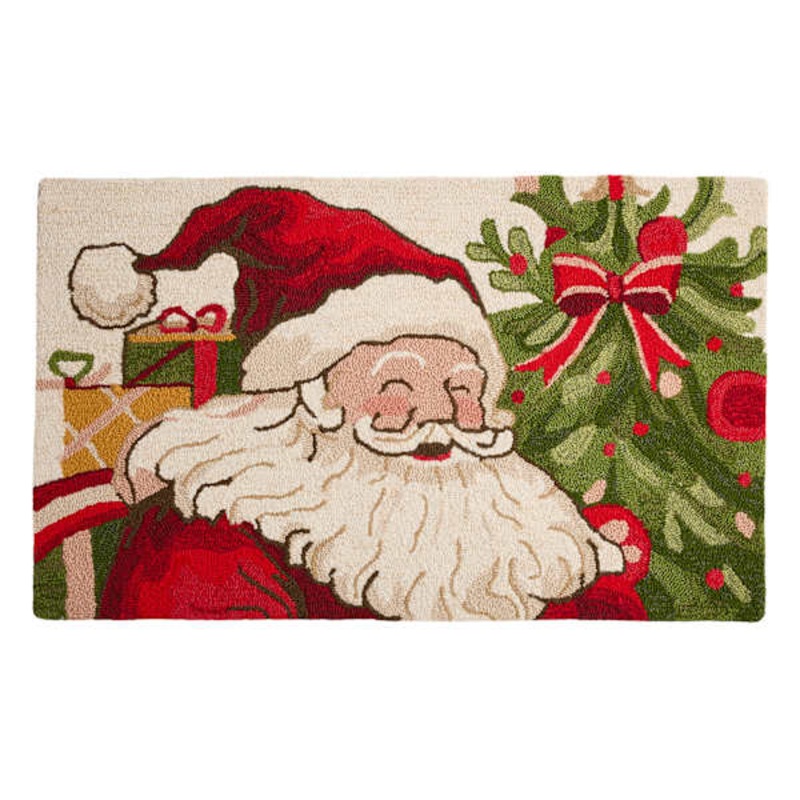 Celebrate the season with the 27x45in. Smiling Santa Hooked Accent Rug. A timeless Santa icon and rich multicolor palette bring instant holiday cheer to your entryway, kitchen, or hallway. The hooked texture adds cozy dimension while polypropylene fibers handle everyday traffic. Rectangle design lays neatly in front of doors and sinks for a festive welcome. A charming Christmas accent rug that completes your holiday decor with classic style.Dimensions45.0″ L x27.0″ W x0.5″ H Weight5.9 lbs.ColormultiMaterialPolypropyleneShapeRectangleDepartmentRugsUPC884631362337Location IDPZ4 WK39