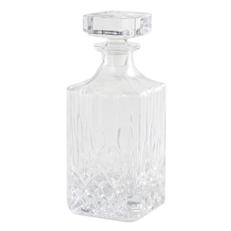 Present your finest whiskey in sophisticated style with our 25oz. cut glass square decanter. Crafted with a traditional square design and a glass stopper, this decanter provides a tasteful elegance that lends to the perfect pour of your favorite spirits-ha