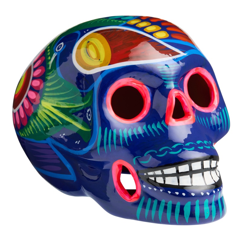CRAFT Small Blue Ceramic Dia de Los Muertos Skull Decor