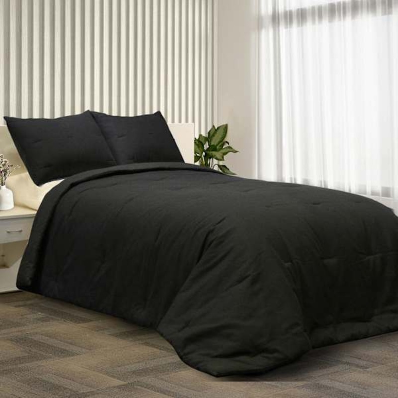 Made from 100% cotton, this comforter set provides a soft and breathable feel, elevating your sleep experience to a whole new level. The bold black color adds a fresh and timeless charm to any bedroom decor. Its textured design adds just the right amount of visual interest, making it an eye-catching centerpiece.