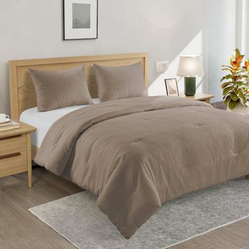 Designed with a modern aesthetic, the Crosby St. Taupe Waffle 3-Piece Full/Queen Comforter Seteffortlessly blends with any decor style, making it a versatile choice for both contemporary and traditional spaces. Its lightweight construction ensures year-round comfort, allowing you to snuggle up in warmth during chilly winter nights or enjoy its breathable nature in the summer.