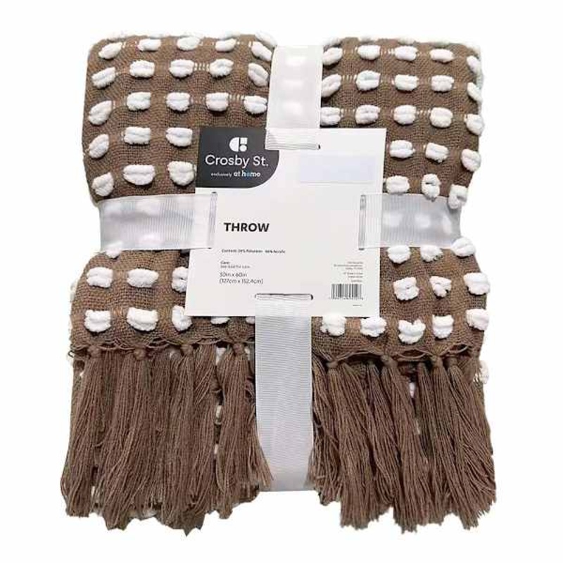 Crosby St. Brown Woven Fringe Throw Blanket, 50×60