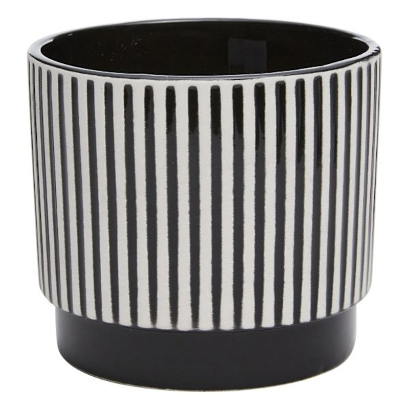 Your plants deserve a stylish upgrade.Give your indoor and outdoor spaces a fresh contemporary look with the Crosby St. Indoor Black and White Stripe Pot. Crafted from ceramic, this pot adds a modern touch to any plant. Whether in a sunny window or on a sh