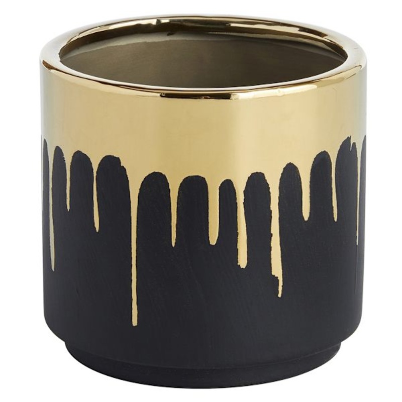 A touch of modern elegance.Enhance your indoor space or elevate your outdoor garden with the Crosby St. Indoor Gold Drip Black Planter. Its sleek and contemporary design effortlessly blends in with any decor theme, adding a sophisticated touch to your surr