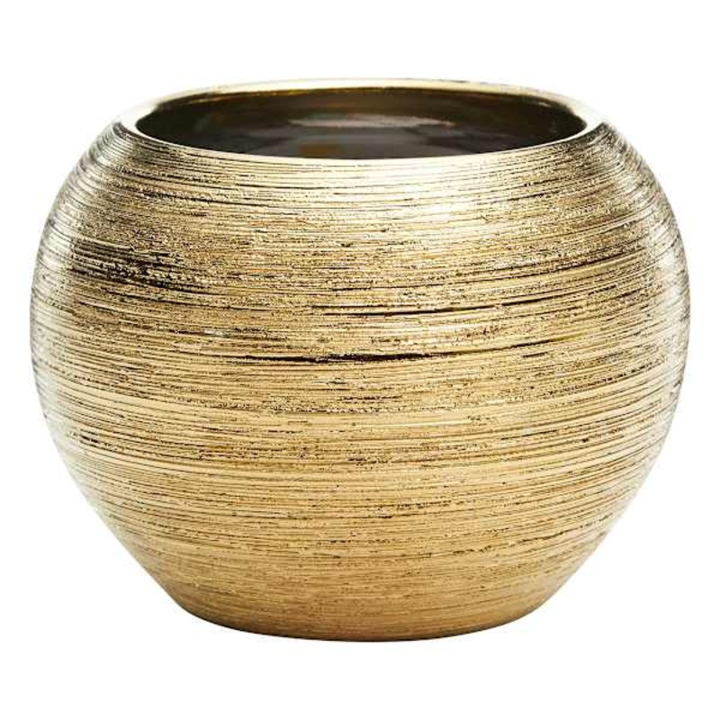 A sleek update to your favorite indoor plant companion.Elevate your favorite indoor plants with the Crosby St. Indoor Gold Round Textured Pot. Crafted in a stunning metallic color, this pot combines modern style and versatility to effortlessly enhance any