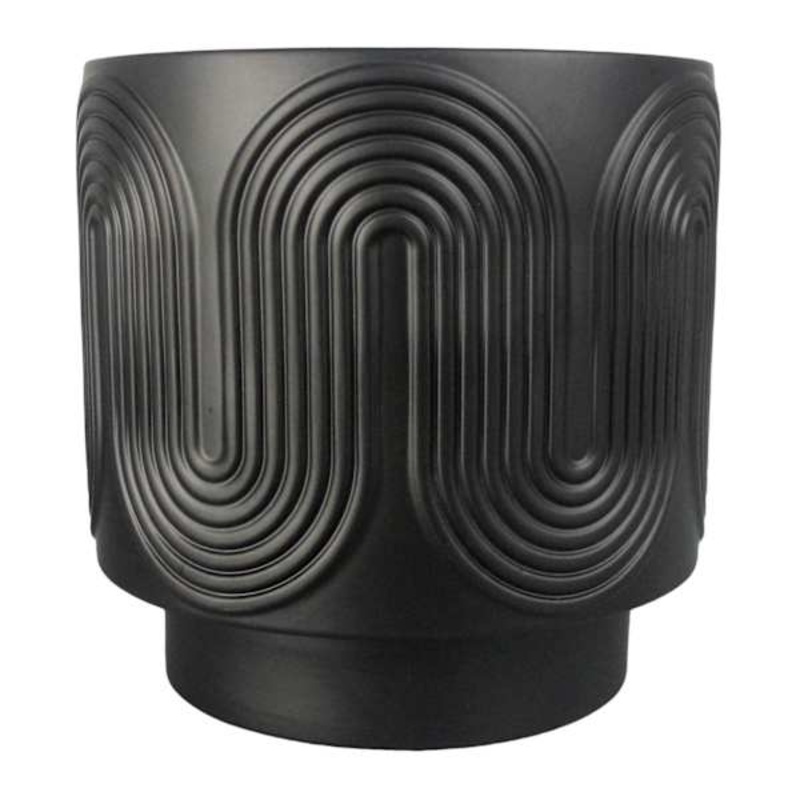 The key to displaying your plants in style. Modern design and unbeatable prices come together at Crosby St. only from At Home. Highlight your green thumb and showcase your annuals and perennials at your front door or lend a pop of festive foliage to the deck with our 8in. Crosby St. Indoor Miles Stoneware Black Planter. More than just a spot to display your gardening skills, this wonderful ribbed wavy stipe ceramic pot with pedestal offers a convenient display with its interesting shape. Designed to live indoors or in a covered outdoor space, it’s ready and waiting to make your plants pop.Part of the Crosby St collection.Features a sleek black finish.Provides ample amount of room.Crafted from ceramic.Dimensions8.1″ L x8.1″ W x8.1″ H Weight5.8 lbs.ColorblackMaterialCeramicDepartmentPatioLocationOutdoor DcorUPC197154352335Location ID42-TG02B