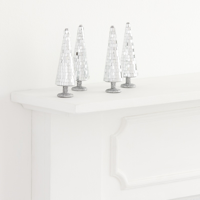 Set a party-ready scene this holiday season with tabletop Christmas trees that are perfect for rockin’ around. Wrapped in reflective rows of tiny mirrors and standing atop glittering silver bases, these dazzling, disco-inspired decorations are ready to catch light and turn heads on mantels, along tablescapes or at place settings.