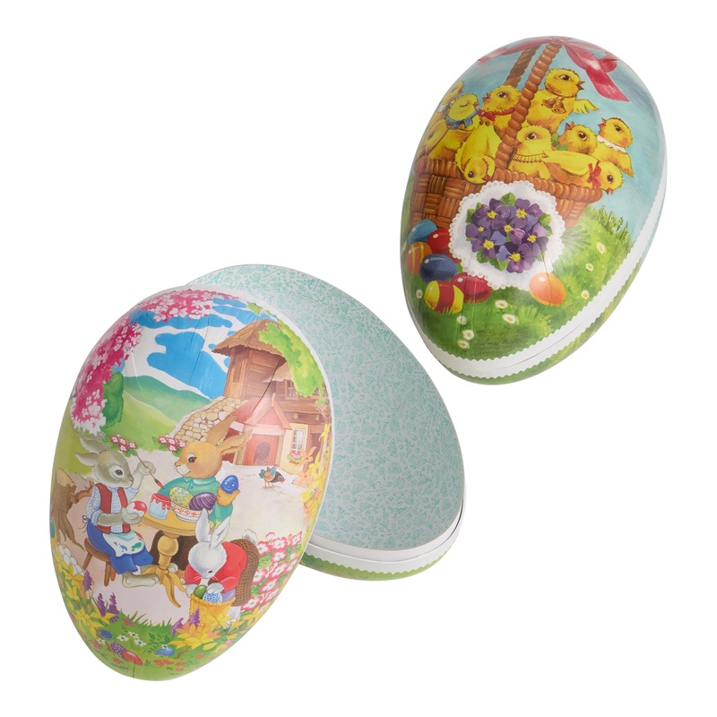 Give your Easter egg hunt a charming old-world feel with this set of two extra-large vintage-inspired eggs that open so you can fill them with candy, toys and other Easter surprises. Handmade by Nestler, a fine cardboard company founded in Erzgebirge, Germany in 1894, these beautiful paper-mache eggs feature reprints of early 20th-century Easter illustrations.