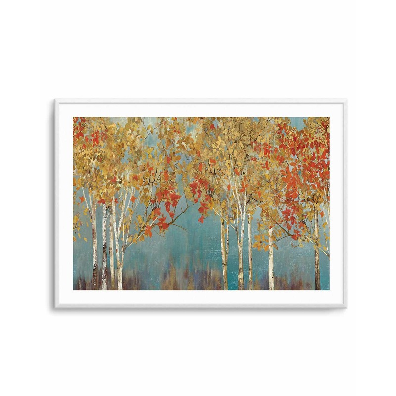Add some modern decor into your living space with 'First Moment', a stunning landscape painting reproduction wall art print featuring an abstractlandscape with red and amber coloured leaves. Perfect for any living room, dining room, bedroom or home office