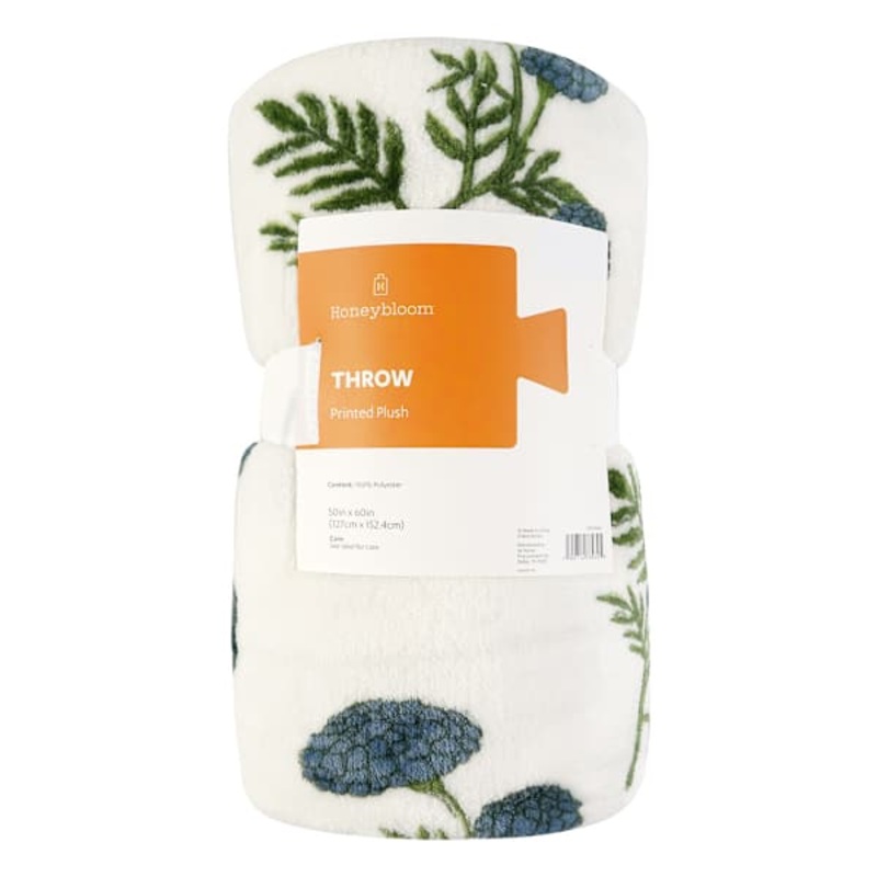 Modern farmhouse meets At Home prices in Honeybloom, our exclusive brand that celebrates life lived together. Our Floral Watercolor Micro Plush Throw Blanket features a wonderful polyester fabric that will keep you warm and toasty. Measuring 50x60in., this luxurious blue, green and white soft plush throw with allover floral stem motif is large enough to curl up in and has classic year-round style.