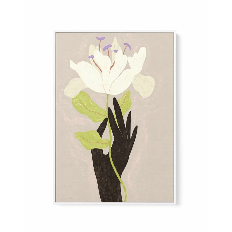 Hand Holding A White Flower On Neutral Background Illustration ArtAll canvas art prints are printed with the highest-quality materials and professional printers. You can trust our craftsmanship and attention to detail when it comes to decorating with frame