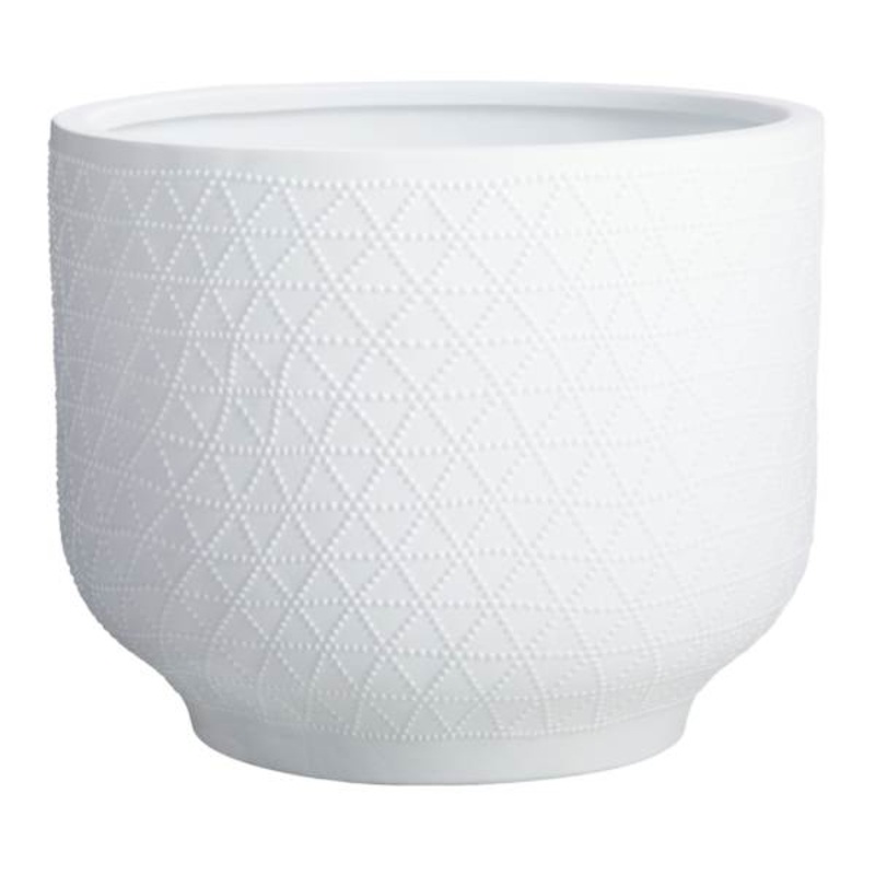 Explore what’s right around the corner. Choose your own adventure every day. Savor it all and say yes to what comes next. Found & Fable is a collection only found at At Home. Highlight your green thumb and showcase your annuals and perennials at your front door or lend a pop of festive foliage to the deck with our 8in. Found & Fable Indoor Dana Stoneware Planter. More than just a spot to display your gardening skills, this wonderful textured diamond dotted design ceramic pot offers a convenient display with its interesting shape. Designed to live indoors or in a covered outdoor space, it’s ready and waiting to make your plants pop.Dimensions7.9″ L x7.9″ W x6.6″ H Weight4.0 lbs.ColorwhiteMaterialCeramicDepartmentPatioLocationOutdoor DcorUPC197154352298Location ID42-GL02B