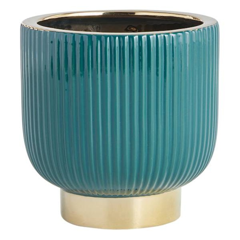 Explore what’s right around the corner. Choose your own adventure every day. Savor it all and say yes to what comes next. Found & Fable is a collection only found at At Home. Highlight your green thumb and showcase your annuals and perennials at your front door or lend a pop of festive foliage to the deck with our 6in. Indoor Emerald and Gold Dean Planter. More than just a spot to display your gardening skills, this wonderful ribbed pedestal ceramic planter offers a convenient display with its fun rounded shape. Designed to live indoors or in a covered outdoor space, it’s ready and waiting to make your plants pop.Dimensions6.0″ L x6.0″ W x6.0″ H Weight2.5 lbs.ColorgreenMaterialCeramicDepartmentPatioLocationOutdoor DcorUPC197154135280Location ID42-GL02C