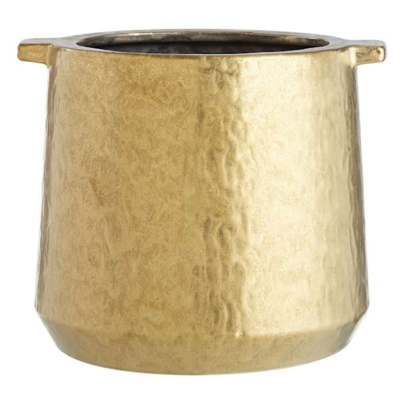 Explore what’s right around the corner. Choose your own adventure every day. Savor it all and say yes to what comes next. Found & Fable is a collection only found at At Home. Highlight your green thumb and showcase your annuals and perennials at your front door or lend a pop of festive foliage to the deck with our 7in. Indoor Gold Ceramic Handle Pot. More than just a spot to display your gardening skills, this wonderful textured golden ceramic planter offers a convenient display with its interesting handled shape. Designed to live indoors or in a covered outdoor space, it’s ready and waiting to make your plants pop.Dimensions7.5″ L x7.1″ W x6.5″ H Weight2.6 lbs.ColormetallicMaterialCeramicDepartmentPatioLocationOutdoor DcorUPC197154135327Location ID42-GL02C