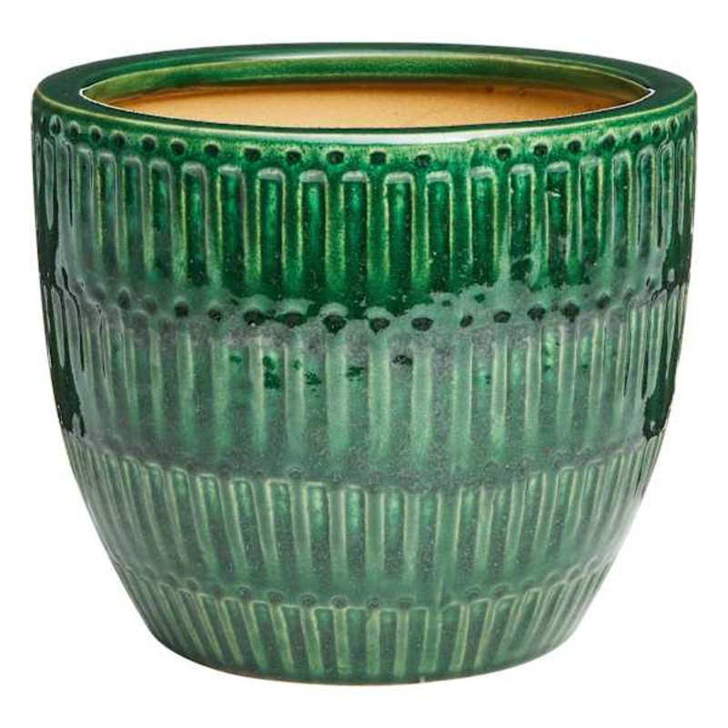 Explore what’s right around the corner. Choose your own adventure every day. Savor it all and say yes to what comes next. Found & Fable is a collection only found at At Home. Highlight your green thumb and showcase your annuals and perennials at your front door or lend a pop of festive foliage to the deck with our 9in. Indoor Green Glazed Ceramic Nico Pot. More than just a spot to display your gardening skills, this wonderful flared embossed channel and dot ceramic planter offers a convenient display with its fun rounded shape. Designed to live indoors or in a covered outdoor space, it’s ready and waiting to make your plants pop.Dimensions8.7″ L x8.7″ W x6.3″ H Weight5.9 lbs.ColorgreenMaterialCeramicDepartmentPatioLocationOutdoor DcorUPC197154135228Location ID42-GL02C